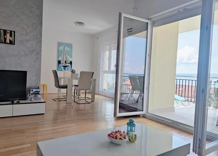 Beach Poli Moraから徒歩で25分以内に位置する広々とした寝室2室のApartment Mia ツリクヴェニツァでは、ビジネスにもレジャーにもWiFiを利用することができます。 海の景色を望むテラスを提供するこの96m²のアパートは、Plaza Podvorska数歩の距離です。